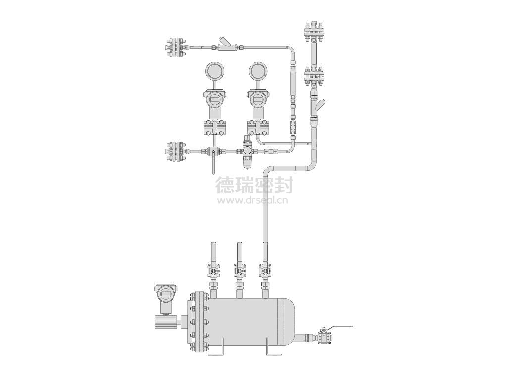 4. 系統(tǒng)與密封排氣口連接,當(dāng)密封泄漏時,會引起系統(tǒng)內(nèi)壓力增加,觸發(fā)壓力變送器報警。泄漏介質(zhì)會通過系統(tǒng)管路輸送到收集器,安裝在收集器上的液位變送器用于決定是否需要排液,也可用于監(jiān)測泄漏速率;